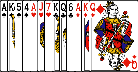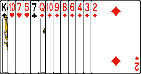 Ai o culoare de cupă puternică (adică cel puțin 2 din cei 3 onori mari), și 6 cărți de cupă. În total ai 9 puncte totale, deci deschizi un semibaraj de 2♥.